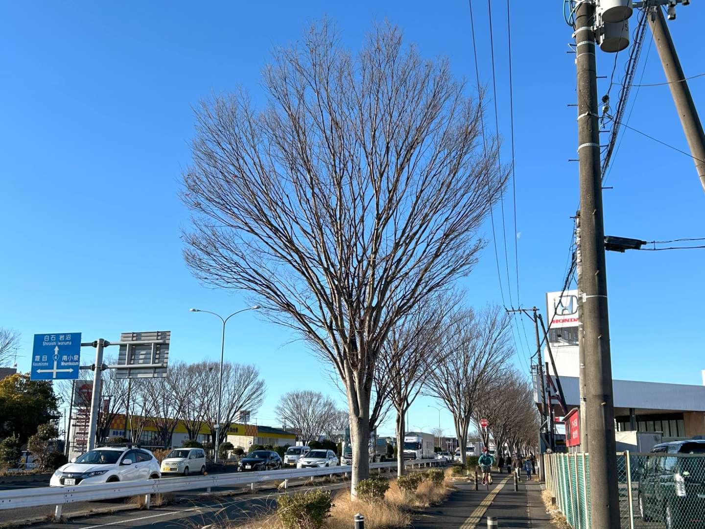 弊社のすぐ横、国道4号線沿いに植えてある街路樹が、ケヤキです。