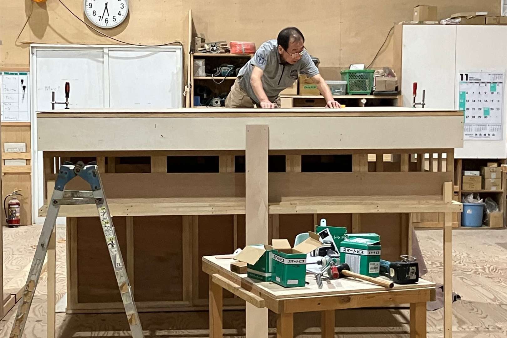 当社の工場では、毎日たくさんの木の材料を使って家具や什器を製作しています。