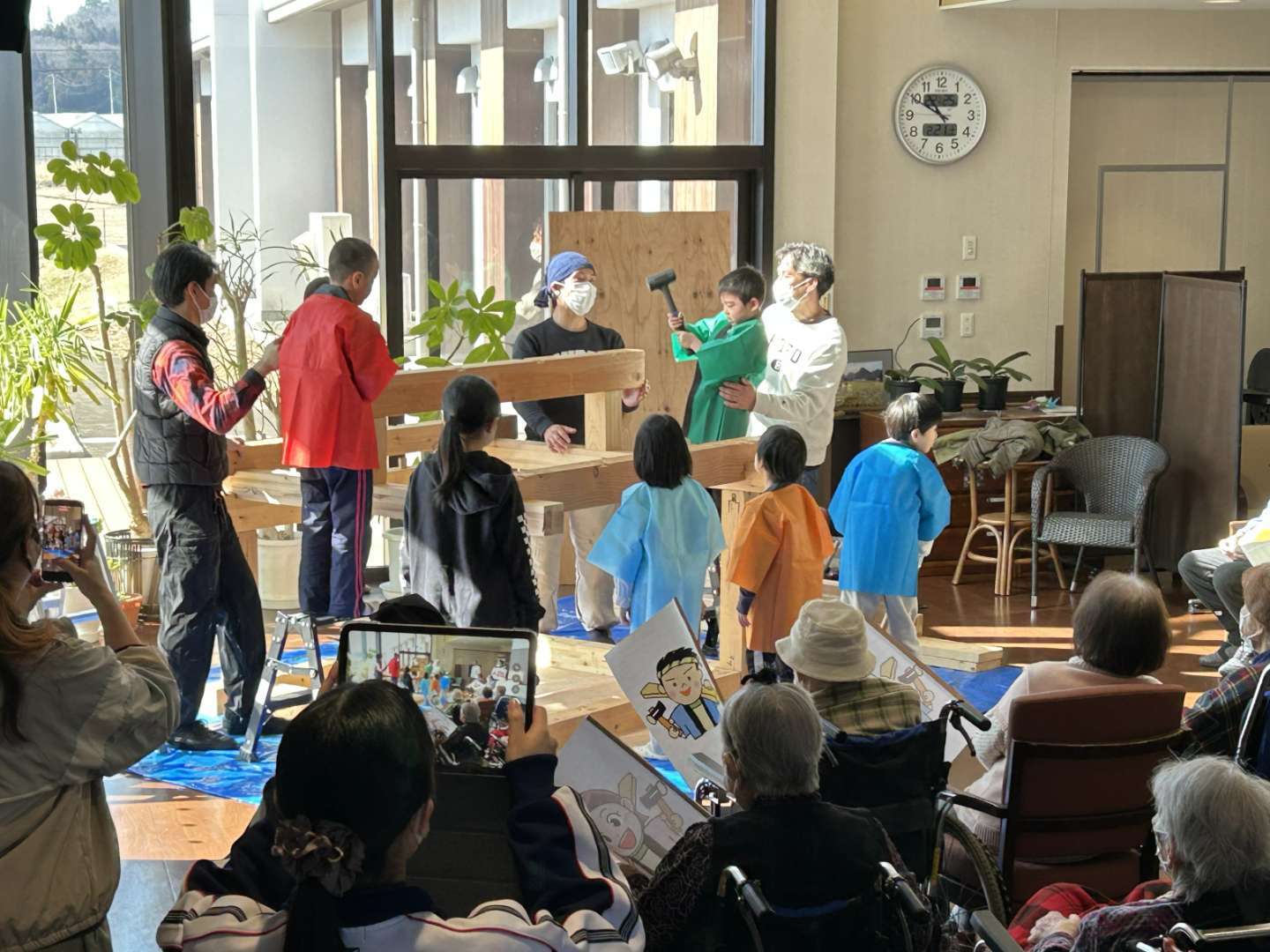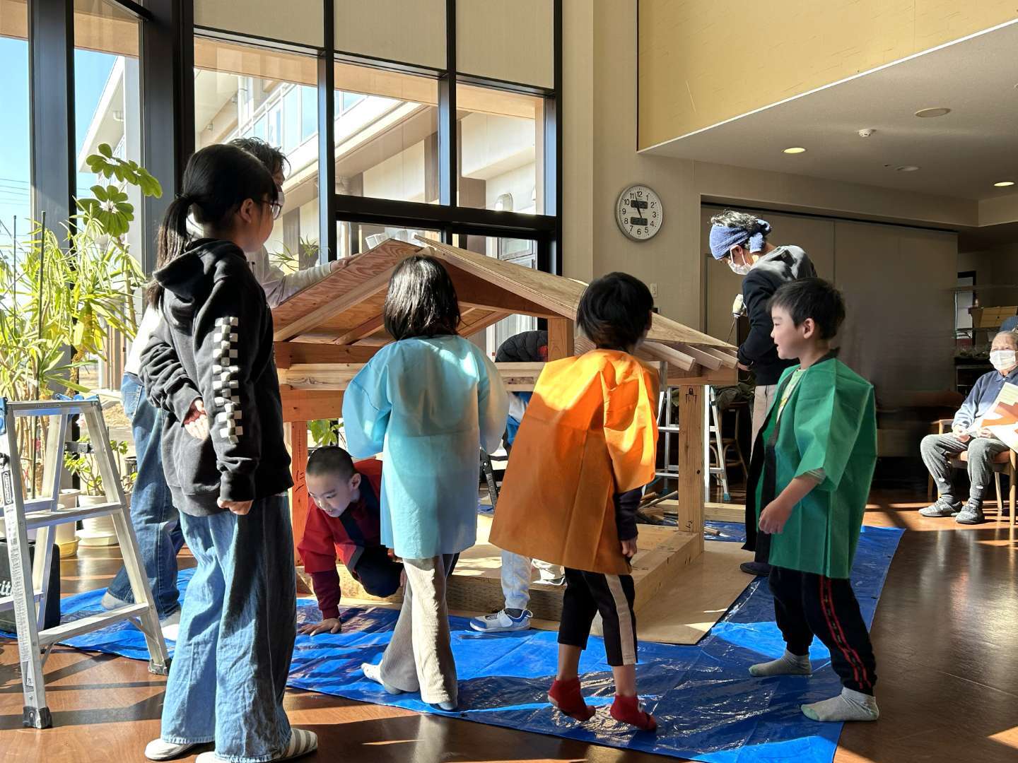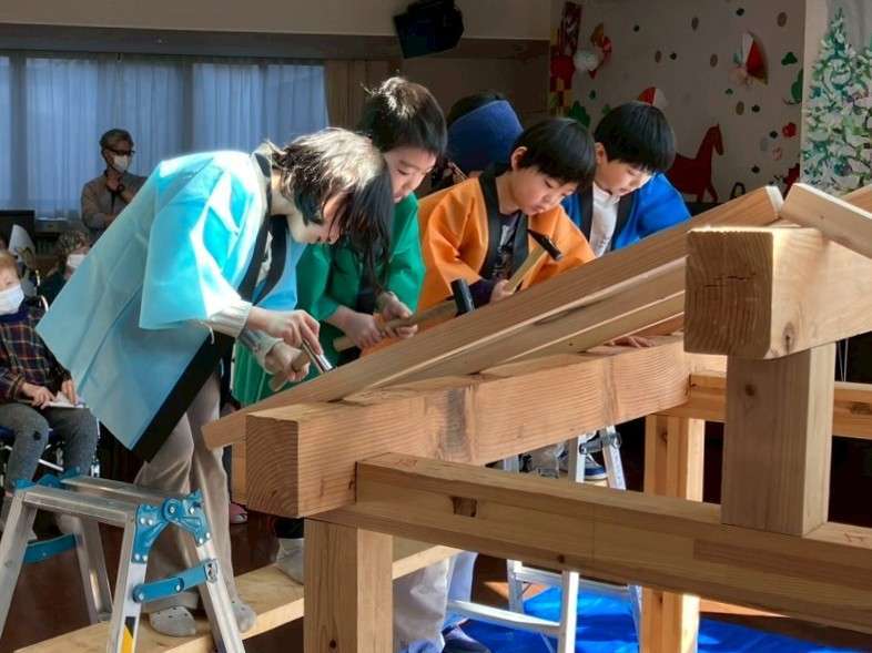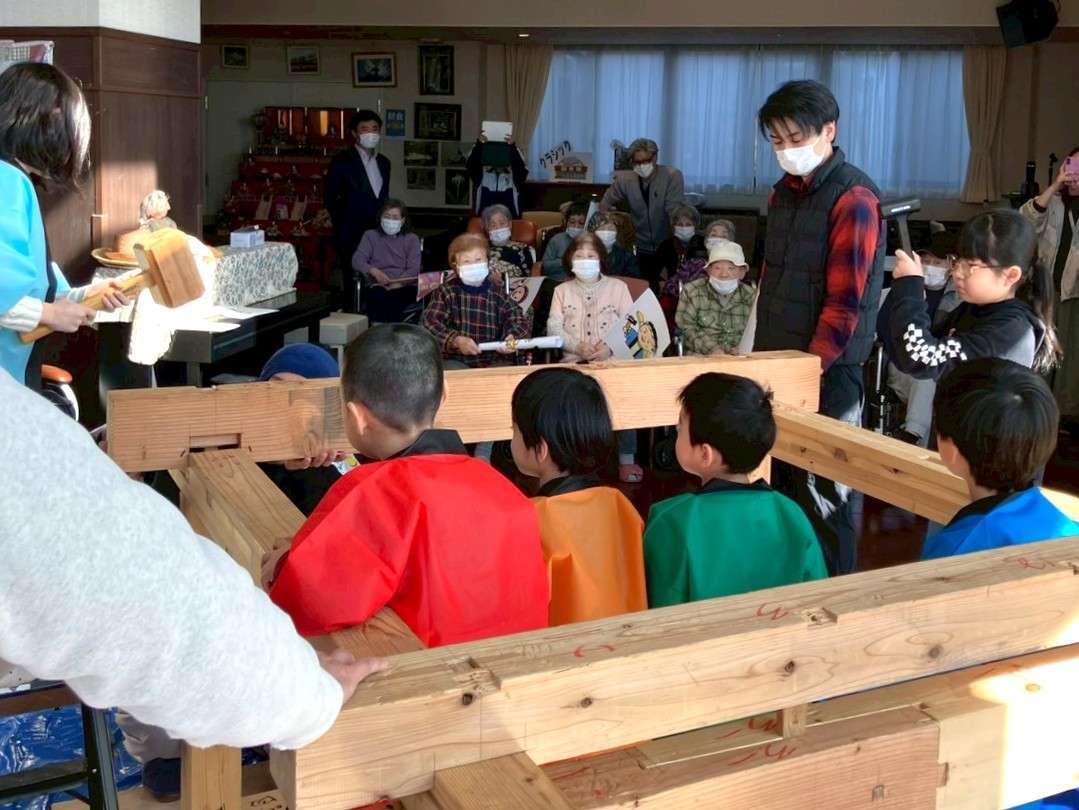 特別養護老人ホーム 泉クラシックさんの交流ホールで、子どもたちと一緒に “上棟式” を行いました😃
