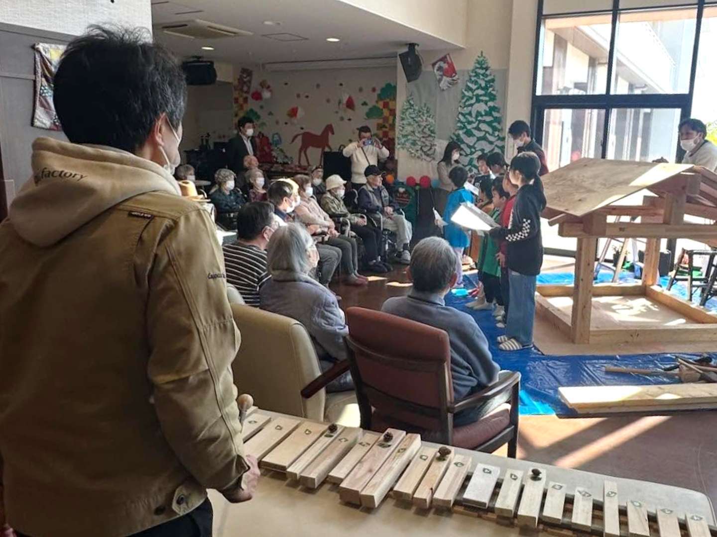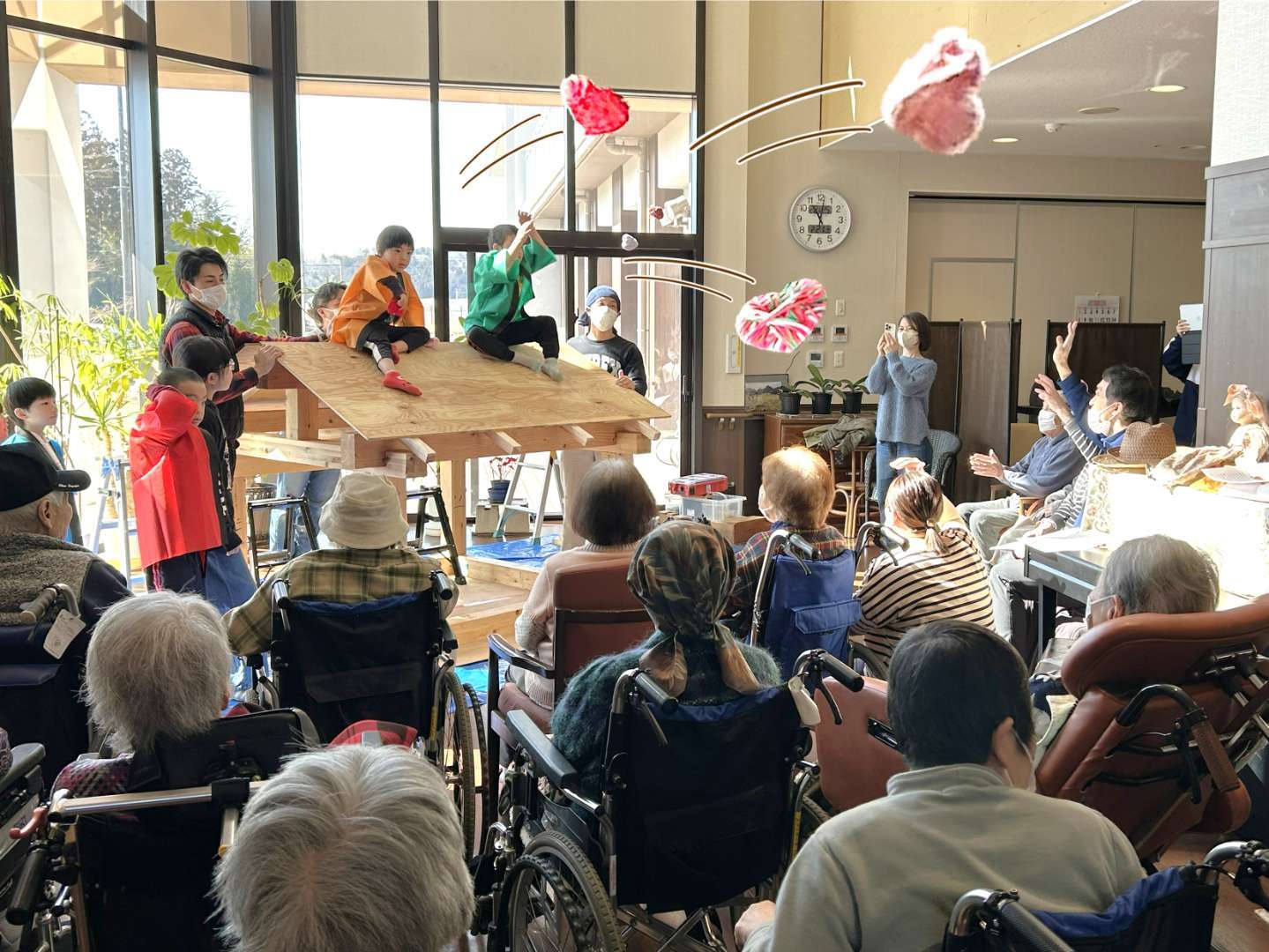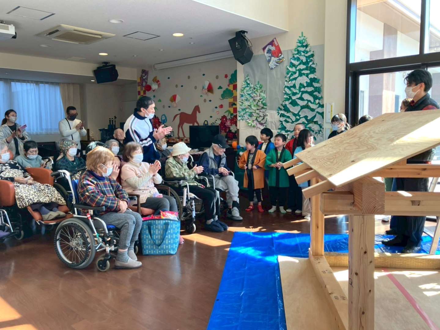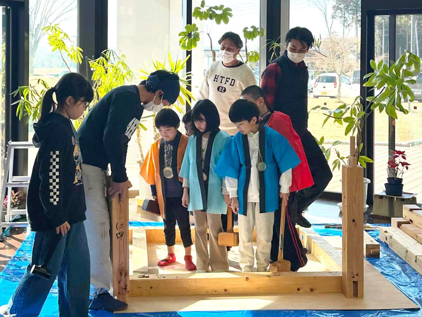 特別養護老人ホーム 泉クラシックさんの交流ホールで、子どもたちと一緒に “上棟式” を行いました😃