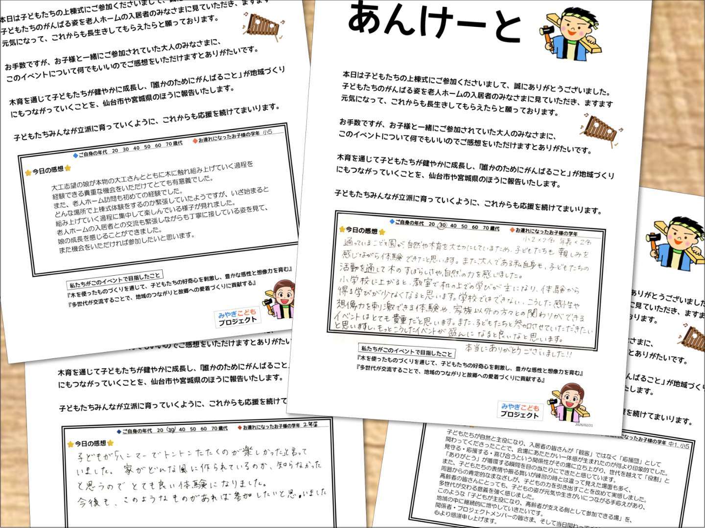 ご参加された親御さんに、アンケートへのご協力をお願いしました。