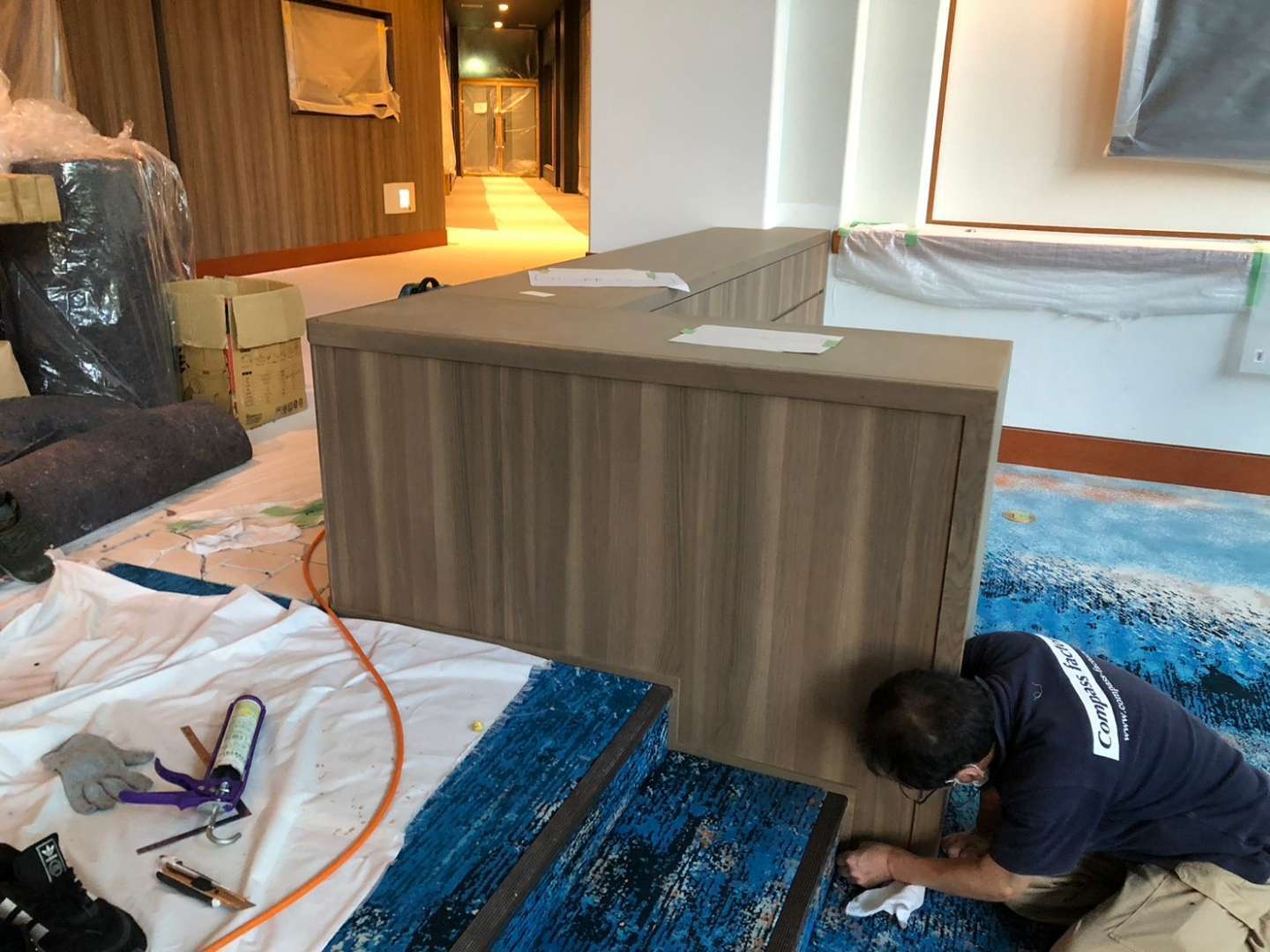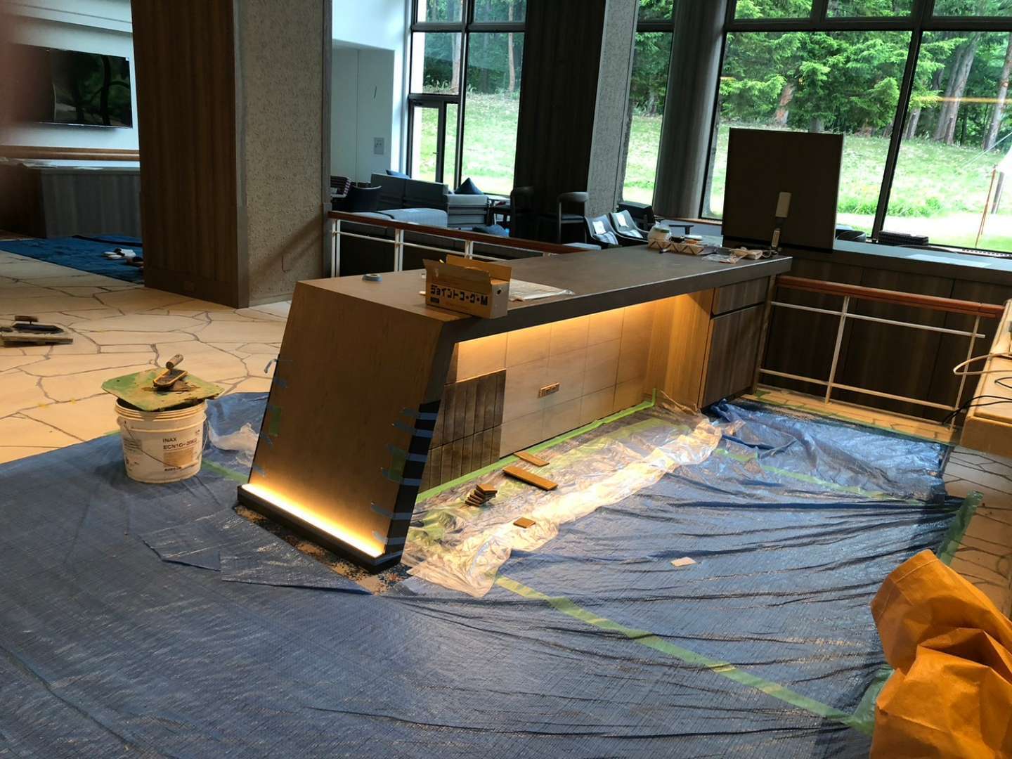 裏磐梯某リゾートホテルオープンに伴い、フロント、ロビー、宿泊室の家具什器製作、取付工事を行いました。 製作、施工風景はブログ内で紹介しておりますので、ぜひそちらをご覧ください。